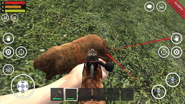 4、击倒野猪后,靠近尸体会出现“OPEN”图标,点击手标即可查看。