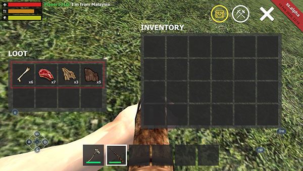 3、掏出武器并瞄准后即可开火(一般使用石斧,若需要其他武器则需自己打造)。