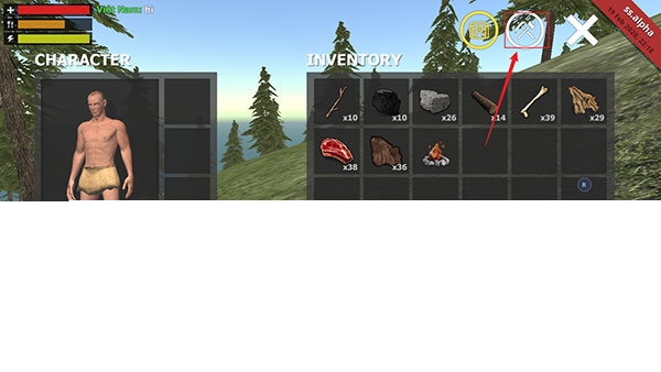 2、然后点击两个斧头图标,进入CRAFTING页面。
