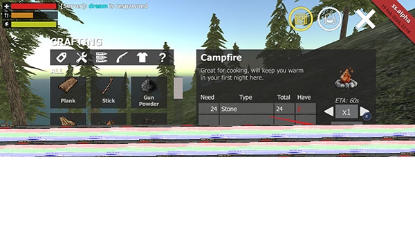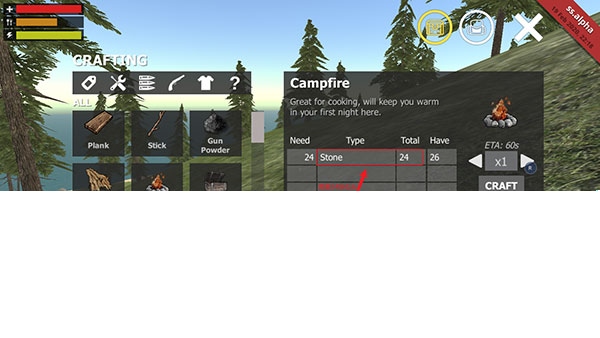 4、右侧会显示搭建Campfire所需的24块石头。