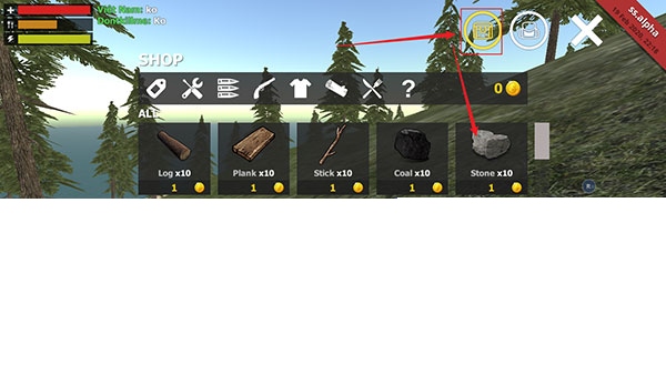 5、用小斧头砍石头获取石块,但由于本次版本的限制,玩家也可以直接在商店购买Stone(石头),或者直接购买Campfire。