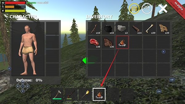 10、将火炬、木材和需要加热的食物(可在商店购买)拖动到营火中即可。