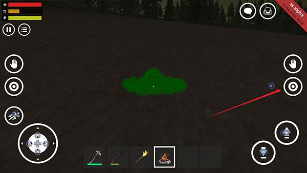 8、完成后,你可以在设定位置看到营火,点击“眼睛”图标确认搭建。